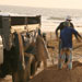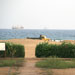 Das hinderte uns aber nicht daran, kurz zum Strand zu gehen wo wir frische Ozeanluft und Strandidylle erwarteten. Nun ja, die Wirklichkeit war voller Überraschungen: Am Strand verteilt standen etwa 50 Lastwagen, die von afrikanischen jungen Männern mit Schaufeln, zügig mit Sand beladen wurden. Alle paar Minuten donnerte ein qualmendes Ungetüm an uns vorbei. Wir waren Zeuge eines Sandabbaus für Straßen- bzw. Häuserbau. Also keine Spur von idyllischem Strandleben. Einkommen und Lebenssicherung sind offensichtlich wichtiger als Umweltschutz und Strandschutz. Frauen hatten kleine Lager gebildet, um den Arbeitenden etwas zu Essen zu reichen.