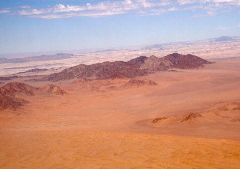 A very arid desert lay below us with several mountain ranges. The nearer we got to Windhoek, the more we saw the odd settlement, farms and streams lined with trees. Here in the desert it clearly rains much more than we had thought.