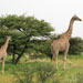 We were given a very warm welcome and taken to our suite by electric buggy. Our suite was a hut with a straw roof and a spacious living area. After we had settled in, we took off at 3 p.m. for a game drive. We went into Etosha National Park with the usual Range Rover. Mokuti Lodge is in the east, outside the National Park, but still very near to the entrance of the park. People on photo safari enter the National Park to visit all the different areas. Because of the current rainy season the whole area was covered in lush grass and green trees. Both in the bush and on the massive plains you could see huge herds of different animals: gnus, springbok, impalas and other well-known animals. During our two trips through Etosha National Park we saw both lions and a rhino. But the most impressive sight was all the giraffes. We hadn't seen as many giraffes in the whole of Africa as we had seen here. Sometimes they appeared in large groups of 20 to 30 animals and wandered majestically, their heads held high, through the bush. There were also a lot of young animals. Our guide explained that during the rainy season the animals don't just stop at the remaining water holes, but graze over the whole area. This was the reason why there were so many huge herds to be seen. Without doubt, the Etosha Pan is Africa's giraffe country. In contrast to the Serengeti, we weren't able to see one single elephant. During the rainy season they withdraw to the bush forest higher up and are therefore not to be seen in the open. Basically, February is the height of summer in Africa. So we were rather surprised that it still rained a lot and temperatures weren't as high as we'd thought and merely between 23 and 26 degrees. Higher temperatures are prevented by heavy cloud which doesn't allow many of the sun's rays to penetrate.