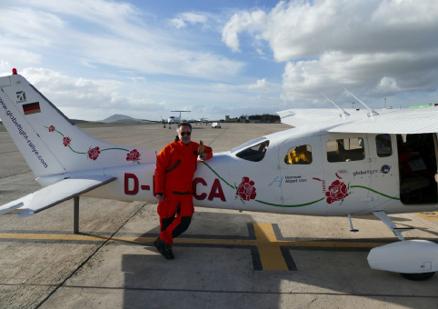 Martin war damit beschäftigt, den Flugplan zu ändern, da die Route zunächst bis zur afrikanischen Küste führte und dann erst nach Westen abbog Richtung Dakar. Dadurch ergab sich ein Umweg von fast 100 Meilen. Martin entwickelte also einen anderen Flugplan und sprach nach der Ankunft am Flughafen mit unserem Handlingagenten darüber, ob dieser nicht in der Lage sei, den Flugplan in geänderter Form abzugeben, damit wir etwa gut 90 Meilen sparen. Der Handlingagent hat dies sofort in die Tat umgesetzt mit dem Ergebnis, dass zunächst ein ungültiger Plan vorlag mit einem falschen call sign, nämlich nicht DEMCA, sondern DEMCR. Dieser Flugplan war natürlich ungültig, so dass ein dritter Flugplan aufgegeben werden musste mit dem gültigen call sign. Das alles nahm dann schließlich so viel Zeit in Anspruch, dass wir statt 9:30 Uhr erst um 10:00 Uhr starten konnten und durch die ganze Aktion zunächst eine halbe Stunde verloren hatten. Und dieser Flugplan besagte auch, dass wir den Umweg fliegen müssen. Der Funkkontakt mit dem Tower ergab dann, dass dieser Umweg sehr wohl bewusst eingeplant war, da zu diesem Zeitpunkt militärische Übungen auf dem Meer stattfanden. Wir hatten allerdings zur Sicherheit auch am Morgen nochmals zusätzlich 150 l Avgas getankt, d. h. eingefüllt in unseren zusätzlich Tank im hinteren Passagierraum. Auch die Pumpen für diesen Tank wollten wir auf dem Flug ausprobieren und auf jeden Fall vermeiden, dass wir eine Sicherheitslandung an der afrikanischen Küste vor Dakar durchführen müssen. Nach etwa einer halben Stunde Flugzeit gelang es Martin dann, über Funk doch eine Abkürzung der bisher geplanten Strecke zu erreichen. Der entsprechende Fluglotse teilte mit, dass die militärische Übung nunmehr beendet sei und wir den Kurs direkt nach Dakar einschlagen können. Dadurch erhöhte sich die zu fliegende Strecke übers Meer deutlich, aber die insgesamt geflogene Strecke wurde kleiner. Ich hatte für diesen Flug nicht nur meinen Überlebensanzug angezogen, sondern ebenfalls das Rettungsboot während des ganzen Fluges umgeschnallt. Das war ein Experiment um festzustellen, wie lange man es aushält, in dieser Montur tatsächlich zu fliegen. Ich habe es ausgehalten bis Dakar, das heißt 7 ½ Stunden. Kurz bevor wir die mauretanische Grenze erreichten, fragte plötzlich der Controller nach einem 20-stellingen Genehmigungscode, den wir gerade wenige Minuten vorher aus unseren Flugunterlagen herausgekramt hatten, da ein vor uns fliegender französischer Pilot ebenfalls nach dieser Genehmigungsnummer gefragt wurde. Somit verlief dieser Flug letztendlich reibungslos und wir erreichten nach etwa 7 Stunden Dakar-Radar. Da die afrikanischen Fluglotsen in der Regel über keinen Radar verfügen, muss man als Pilot oder Funker ständig Positionsmeldungen abgeben, damit er genau weiß, wo sich welches Flugzeug befindet. Diese präzisen Positionsmeldungen dienen der Flugsicherheit und sollen vermeiden, dass es zu Kollisionen in der Luft kommt. Etwa 100 Meilen vor Dakar stellten wir leichte Unregelmäßigkeiten beim Lauf des Motors fest und konnten dies nicht wirklich zuordnen. Nachdem wir einmal die Kopfhörer abgenommen hatten, um genaue Hörproben zu machen, konnten wir jedoch nichts mehr feststellen. Im Landeanflug zum Flugplatz Dakar war aber deutliches Stottern des Motors festzustellen. Wir konnten uns nicht erklären, wo dieses herrühren könnte und haben uns natürlich vorgenommen, am Boden sofort einen differenzierten Probelauf durchzuführen, nach dem Motto: Mit solch einem leicht stotternden Motor können wir nicht über den Atlantik fliegen. Nach der Landung hörte sich der Motor jedoch vollkommen in Ordnung an. Martin hatte die Idee, jemanden von der Firma Aerowest anzurufen um zu klären, welche mögliche Ursache dahinter stecken könnte. Wir bekamen einen wirklich heißen Tipp der bedeutet: Möglicherweise sind durch den langen Flug in relativ warmer Luft und durch das Absinken der Maschine in noch wesentlich wärmerer Luft in Dakar Ursache dafür, dass sich im Motorraum sehr heiße Luft gebildet hat, die wiederum die Spritleitungen beeinflusst, so dass in den Spritleistungen leichte Luftbläschen entstehen, die dann von dem Motor quittiert werden mit leichtem Stottern. Die Gegenmaßnahme ist relativ einfach. Es wird die externe Spritpumpe mit eingeschaltet, so dass der Druck auf die Spritzufuhr erhöht wird und die gebildeten Gasblasen zusammen gedrückt werden oder verhindert wird, dass überhaupt welche entstehen. Die Erklärung war für uns sehr einleuchtend, da wir bereits einmal bei einem Flug in Namibia ein ähnliches Phänomen festgestellt hatten und auch damals das Einschalten der Spritpumpe die Ursache beseitigte. In diesem Falle sind wir jedoch selber nicht darauf gekommen und brauchten dazu den kleinen aber sehr wichtigen Tipp des Monteurs von Aerowest. Für uns war dann aber die Entscheidung am 27.11. in Dakar, einen Testflug durchzuführen und die Maschine auf Herz und Nieren zu prüfen. Dies hatte auch der Monteur von Aerowest vorgeschlagen.