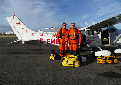 Today we had a long flight in front of us of between 7 and 7 and a half hours over the sea from Cascais to Gran Canaria. Therefore, we had to get up at 6.00 a.m. so that at 8 a.m. at the airfield we could put on our survival suits, try out the dinghies and make all the preparations for our survival equipment. We had planned to practise how to use this during the flight. A very welcome aspect was that the wind was blowing from behind at about 25 knots, so that we were able to fly relatively fast at 150 to 155 knots. Strong turbulence was a problem because sometimes while climbing steeply the autopilot couldn’t maintain altitude and course. It wasn’t until we'd reached cruising altitude that we were able to fly using the autopilot. From above, we looked down on the sea with all its white crests of foam. This was a sign that the sea was choppy and would not be a welcome place to make an emergency landing. During the flight we practised how quickly we could put on our life jackets. On average, each of us needed 2 ½ to 3 minutes to attach the lifeboats which were behind the seats. We had made an exact plan of who had to do what and when. Should an engine fail, the crew has about 10 to 12 minutes to prepare for a landing on the water. In that time a distress call has to be sent, the life jackets put on and all other preparations for a landing on water made. Consequently, 12 minutes are on the one hand a relatively long time, but on the other hand a relatively short one too. It turned out that the pilots suffered a lack of oxygen because the preparations in the cockpit were so physically demanding. You start to sweat and notice the air is quite low in oxygen. But as we have oxygen equipment on board, we just had to inhale a few breaths and were fit again. When approaching Las Palmas Gran Canaria, it was clear that strong wind of 50 knots prevailed on the ground and we would have to make sure we paid attention to the gusts. However, the wind came almost directly from the front, so that the landing was quite smooth nevertheless. As usual, immediately after landing we requested our plane be filled up again. We couldn't believe our ears when the attendant told us that his payment system wasn't working because the software was faulty. We did have aviation fuel, but couldn’t pay for it at that moment. But after about half an hour, the problem was solved and our handling agent brought us and our luggage to the taxi stand and we were able to set off for the hotel. This time Martin had chosen an especially good hotel, the Radisson Blue.