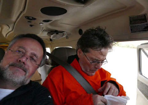 What are two pilots expected to do between 6.30 to about 11 a.m. in full gear in a Cessna 206 with the temperature steadily rising to about 30 degrees? Quite apart from the fact that there were frantic phone calls with all sorts of people and of course with the ATC, the tower, the handling agent and some of Martin’s flying friends, we pilots had to eat something! So what did we do after going without breakfast that morning? We ate up all the breakfast we’d brought with us in Marie between 6.30 and 11 a.m. I admit it looks a bit odd when two pilots get into a Cessna 206 at half past six in the morning with survival suits on and then take 3 ½ hours to eat up their breakfast and allow themselves a ten-minute nap in between. But we thought that whether the Cessna was on the ground or in the air it wouldn’t make any difference. It’s still just as cramped and of course you can spend four hours in the Cessna with your survival suit on and eat breakfast that was really destined to be consumed in the air. So despite all the bad news we didn’t forget to fill our stomachs and still kept our sense of humour.