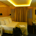 Once I had opened the door, I almost bumped into the wardrobe. Between the door and the wardrobe there were only about 1 ½ metres of space. On the left was a small room with a double bed and leather recliner. There was no water or fruit in sight. The curtain at the window had been drawn. As I like light-flooded spaces, I tried to draw the curtains and had the surprise of my life. The curtain rod fell down from the ceiling and the dowels had been torn out. Then I noticed that the window looked out on an enclosed shaft and there was no light at all. At the same time I tried to switch on the TV with the remote control. I noticed that the lid to the battery compartment was missing. At the tiny desk there was unfortunately only one single socket which discouraged anyone from actually sitting there.